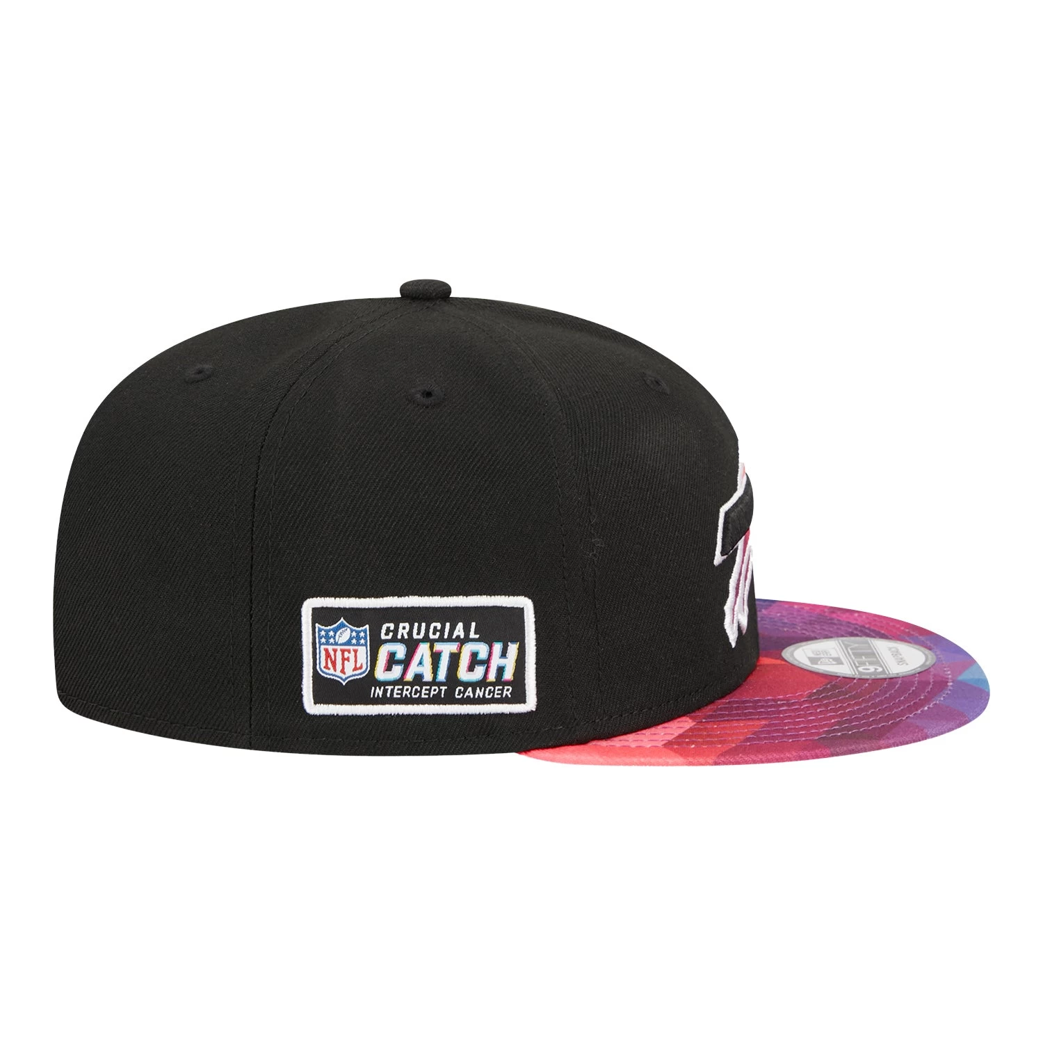 Intercept Cancer with the official 2023 NFL Crucial Catch collection from New Era. This 9FIFTY Fitted Hat features an embroidered Bills logo on the front with a black brim. The official NFL shield is on the right side of the hat, while the rear displays the league’s Crucial Catch logo on a woven label. For more information, please visit www.NFL.com/CrucialCatch.