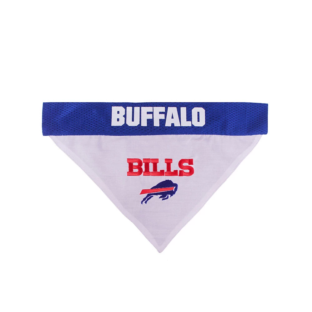 Show off your favorite team and your love for your pet with this Bills Reversible Pet Bandana. It comes in different sizes and features team logo.
