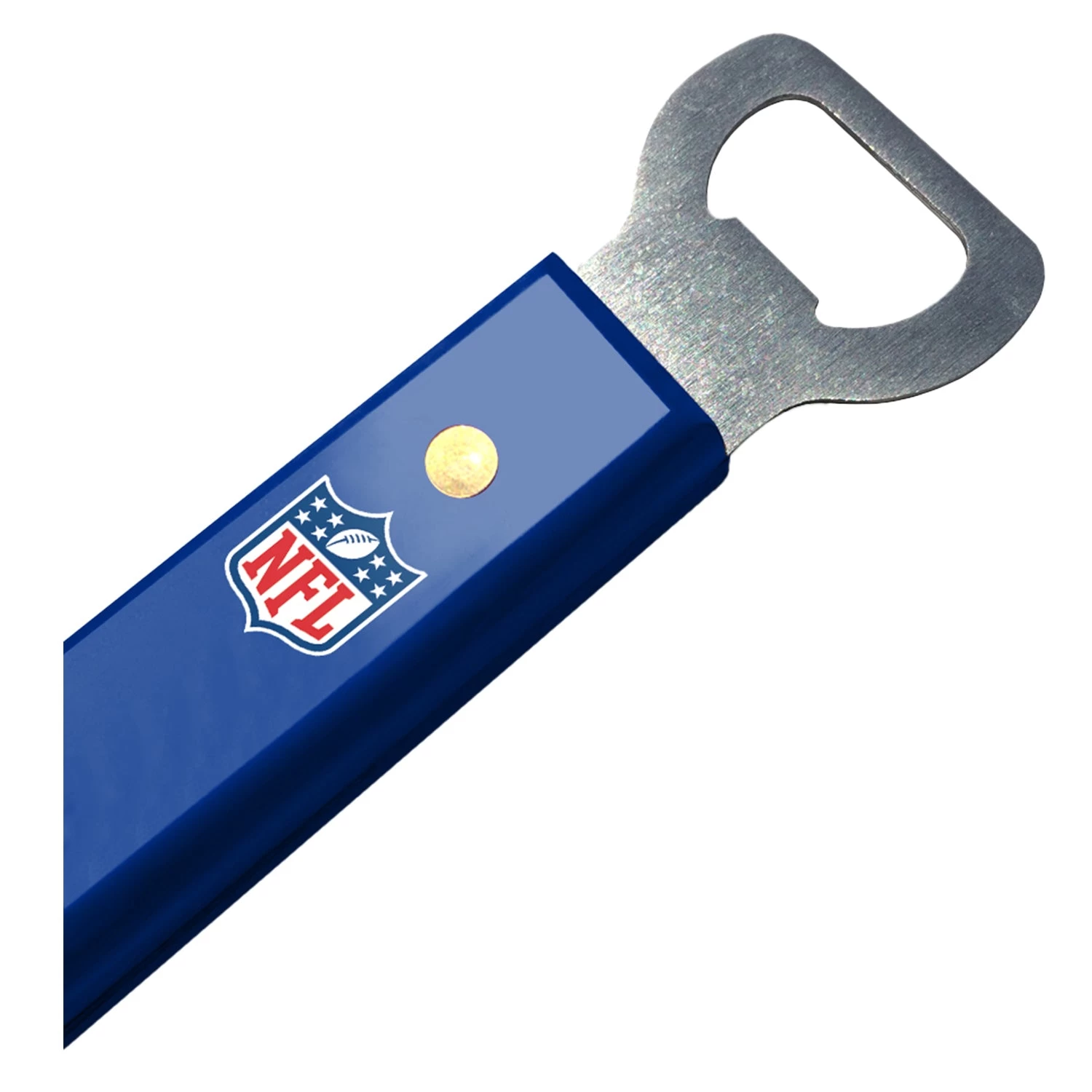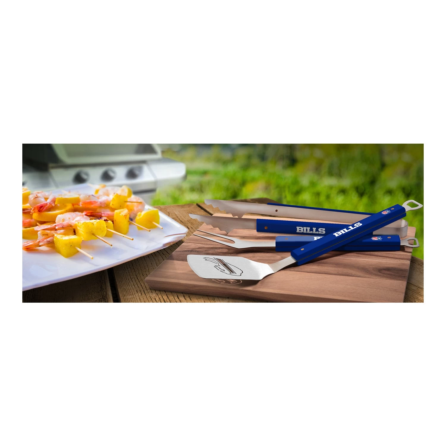 Get your grill game on with an officially licensed set of barbecue tools. The barbecue tool set includes a Sportula, a pair of tongs and a grill fork. Each tool is made from heavy-duty stainless steel with brass-riveted handles. Team name is stamped on the hard maple handles and the logo is laser cut through the blade of the Sportula. The Sportula and the fork both come with an integrated bottle opener. An unforgettable gift for any fan and the most noticed accessory at any tailgating event.