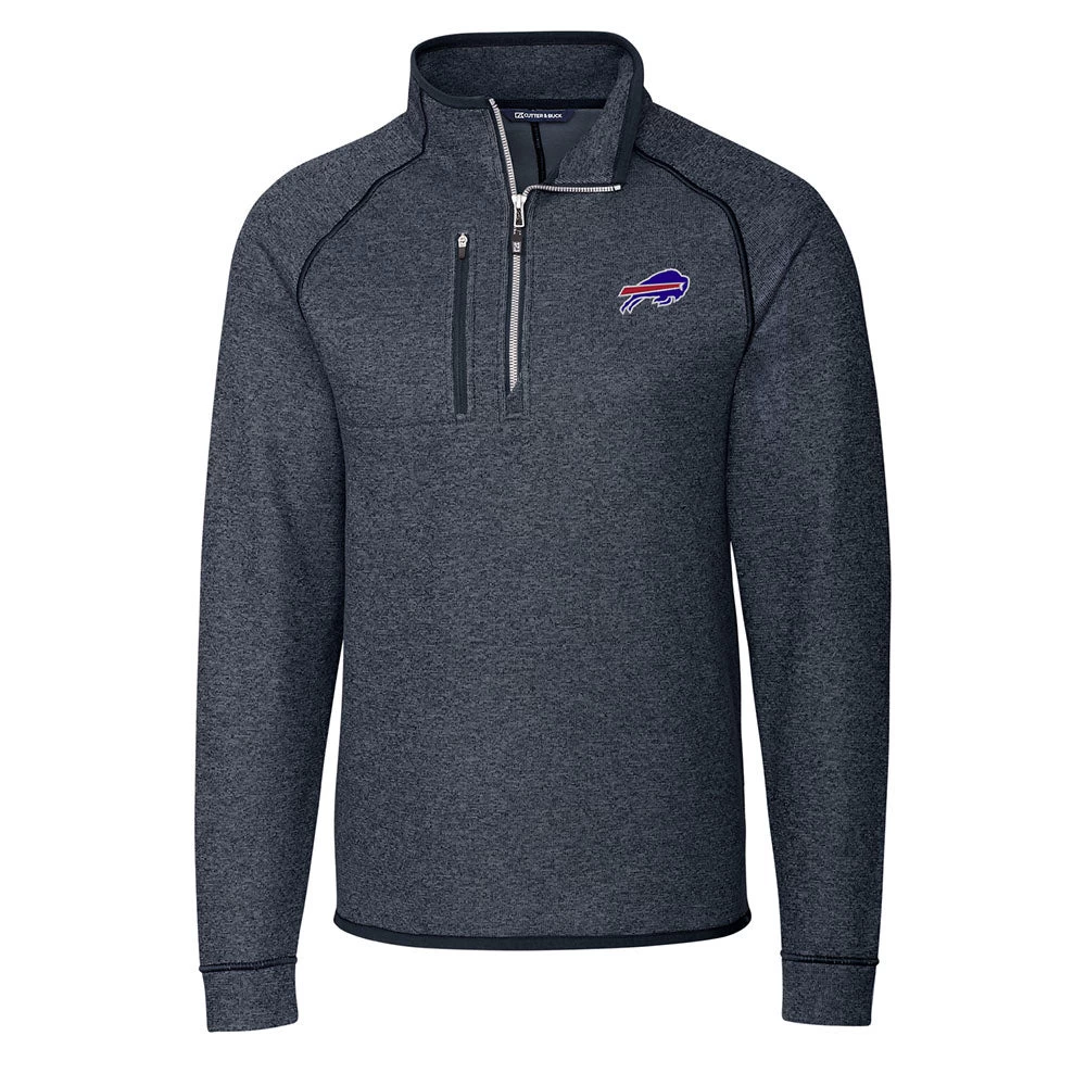 Display your Bills pride with this 1/2 Zip Sweater Jacket made out of 100% polyester knit sweater fleece with heather yarn and features embroidered graphics.