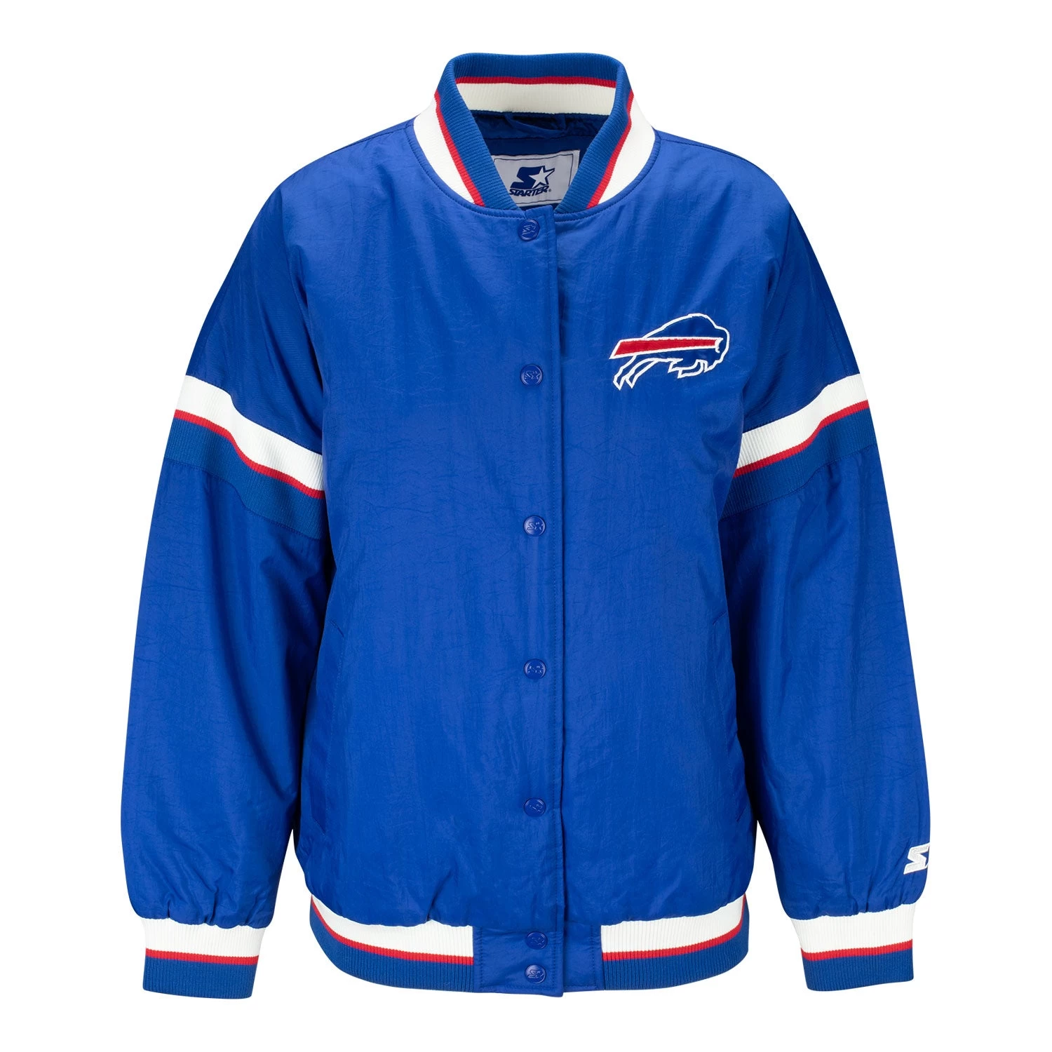 This timeless Bills jacket will be one you wear time and time again for years to come. The drop shoulder, oversize fit jacket includes the classic satin quilted lining and embroidered graphics on the front and back.