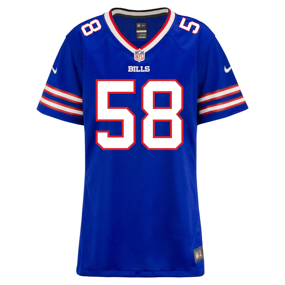 Turn dreams into reality while expressing ultimate fan loyalty today with this Ladies Nike Home Matt Milano Jersey. This officially licensed NFL replica jersey was created to provide today’s elite athlete with maximum comfort while competing on football’s highest playing field. It features a no-tag neck label for clean comfort, a tailored fit design for movement, and silicon print numbers for a light and soft feel. Made of 100% polyester. This Buffalo Bills Ladies Nike NFL Game replica jersey is what you need to get into the game.Â