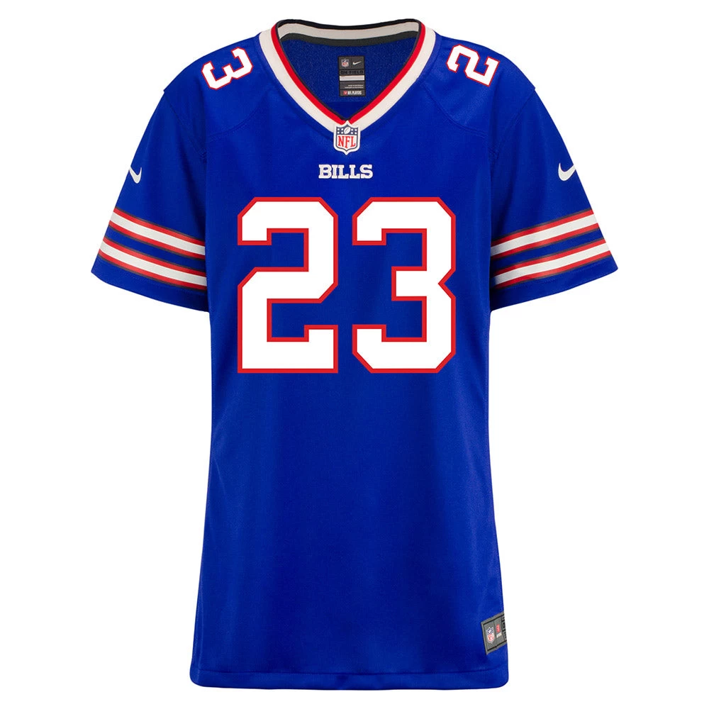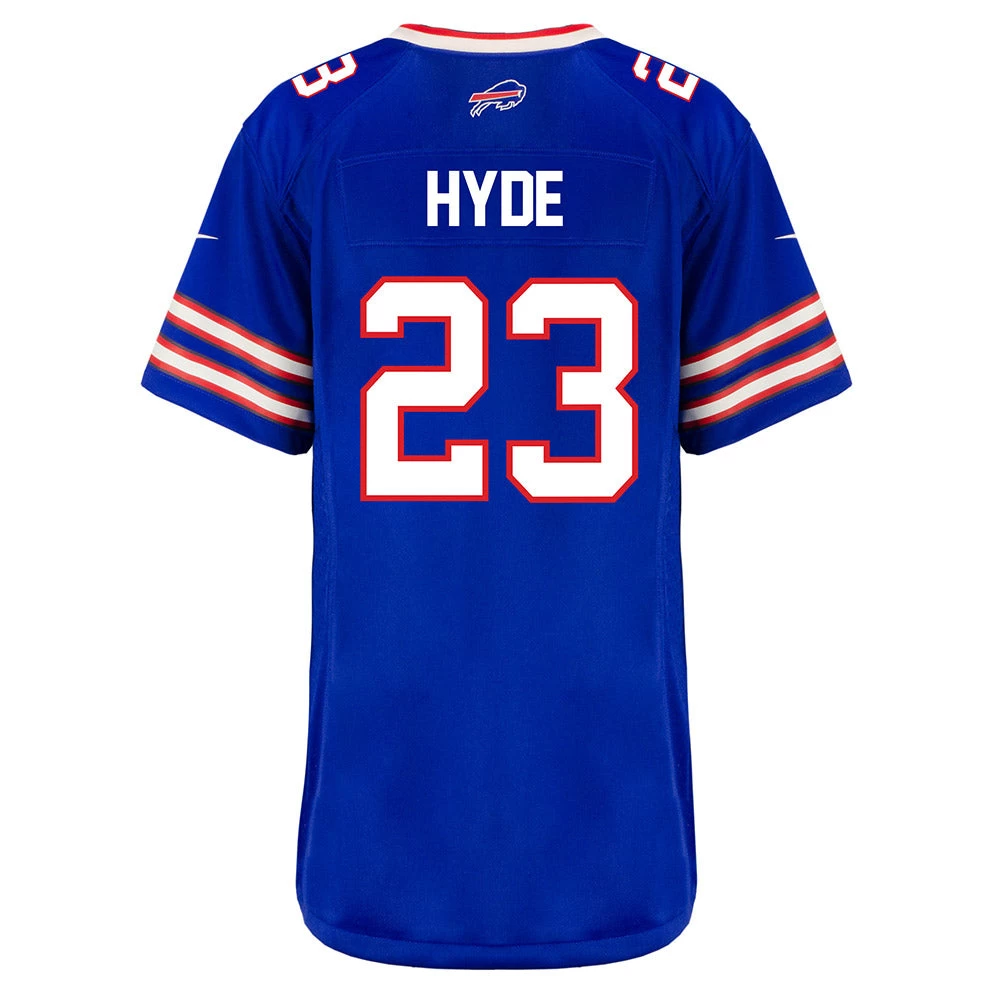 Turn dreams into reality while expressing ultimate fan loyalty today with this Ladies Nike Home Micah Hyde Jersey. This officially licensed NFL replica jersey was created to provide today’s elite athlete with maximum comfort while competing on football’s highest playing field. It features a no-tag neck label for clean comfort, a tailored fit design for movement, and silicon print numbers for a light and soft feel. Made of 100% polyester. This Buffalo Bills Ladies Nike NFL Game replica jersey is what you need to get into the game.Â