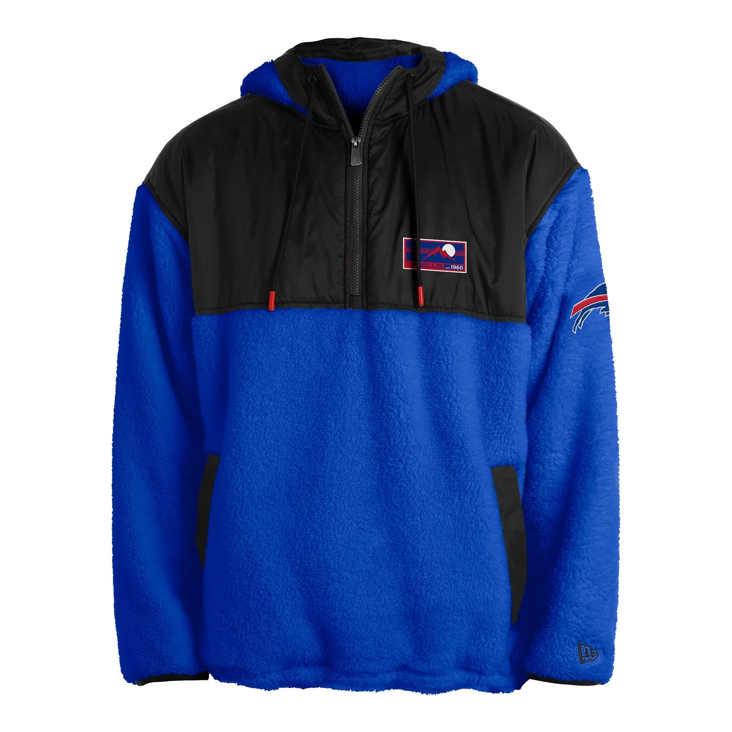 Keep warm this football season when cheering on your Buffalo Bills with this New Era 1/4 Zip Sherpa Jacket.