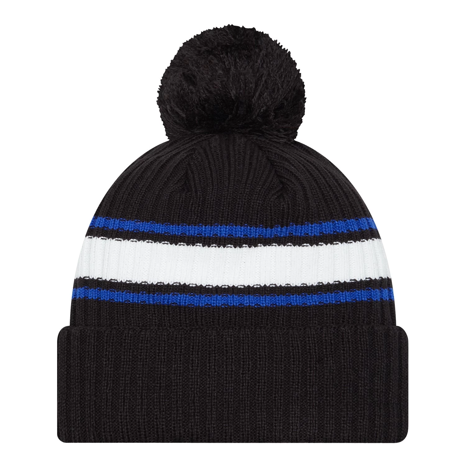 This Black Pom Knit features an embroidered Bills logo at the front with a one-time removable pom.